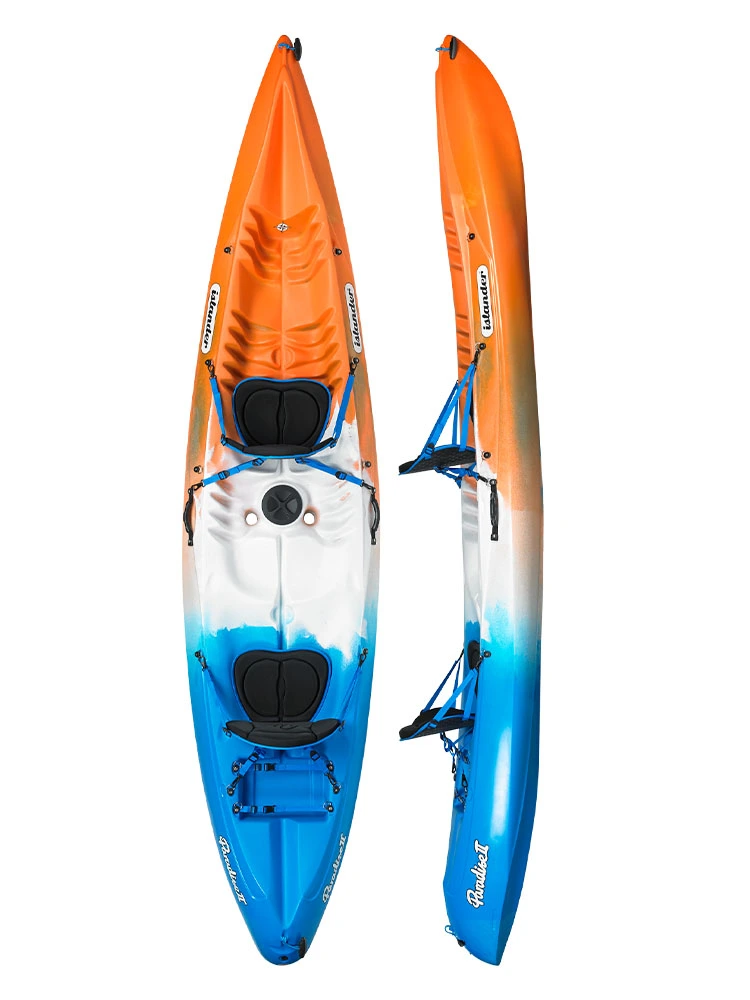 The Islander Paradise II is an excellent tandem Sit on Top which can also be paddled solo. Ideal for families or two adults thanks to a stable multi-chine hull and strong keel, it is stable and tracks easily. The Paradise II is easy to put on a roof rack and an excellent choice for taking away on holiday. It comes fully equipped with 2 padded backrests which grip the base of your back for increased support and comfort in mind.