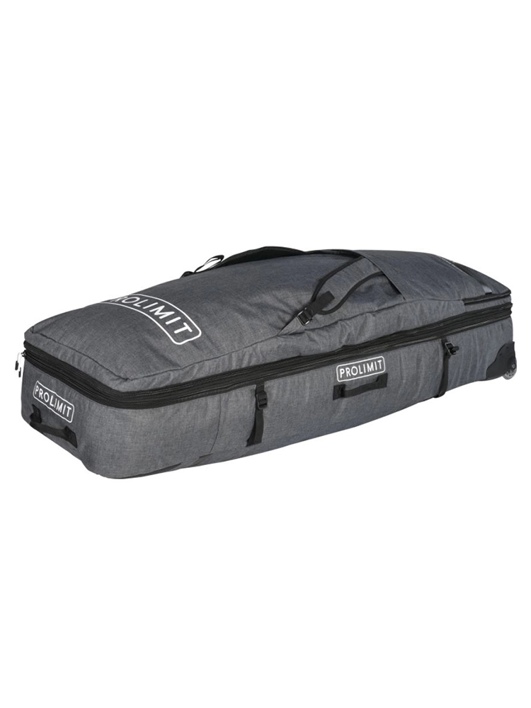 The Prolimit Kitesurf Boardbag Multitravel Combo With Wheelbase is the light weight travel bag for kiteboarders. Bottom section is seperate board compartment. Top section is 1 bigcompartement for your remaninging gear. Bag can be split into 2 bags, board section and quiver part. You can use the bag as an back pack with the stashable back pack straps. Fixed wheelbase.