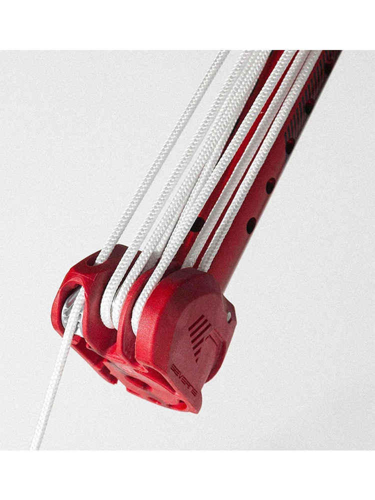 Design focused on reducing downhaul friction for easier rigging. Careful attention to rope alignment and pulley spacing has enabled significant improvements. Perfectly matched to any sail with the 4-roller tack pulley, the Triple Xtension also suits sails with the 3-roller tack pulley. Other features include Dyneema rope and an integrated hook to anchor the tack strap.